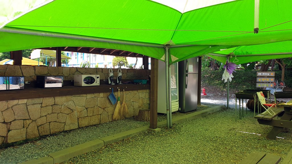 냉장고 옆에 화덕(화로)도 있으니 바베큐, 삼겹살 구이등에 이용하실려면 편하게 가져다가 사용하면 되네요. 집게는 재를 버리는 곳에 있으라구요. 저희는 장작은 가져갈 생각을 못하였는데, 다른 캠핑 오신 분들은 장작을 꽤 가져 오셨드라구요. 사용후엔 다음사람을 위해 깨끗하게 정리~^^